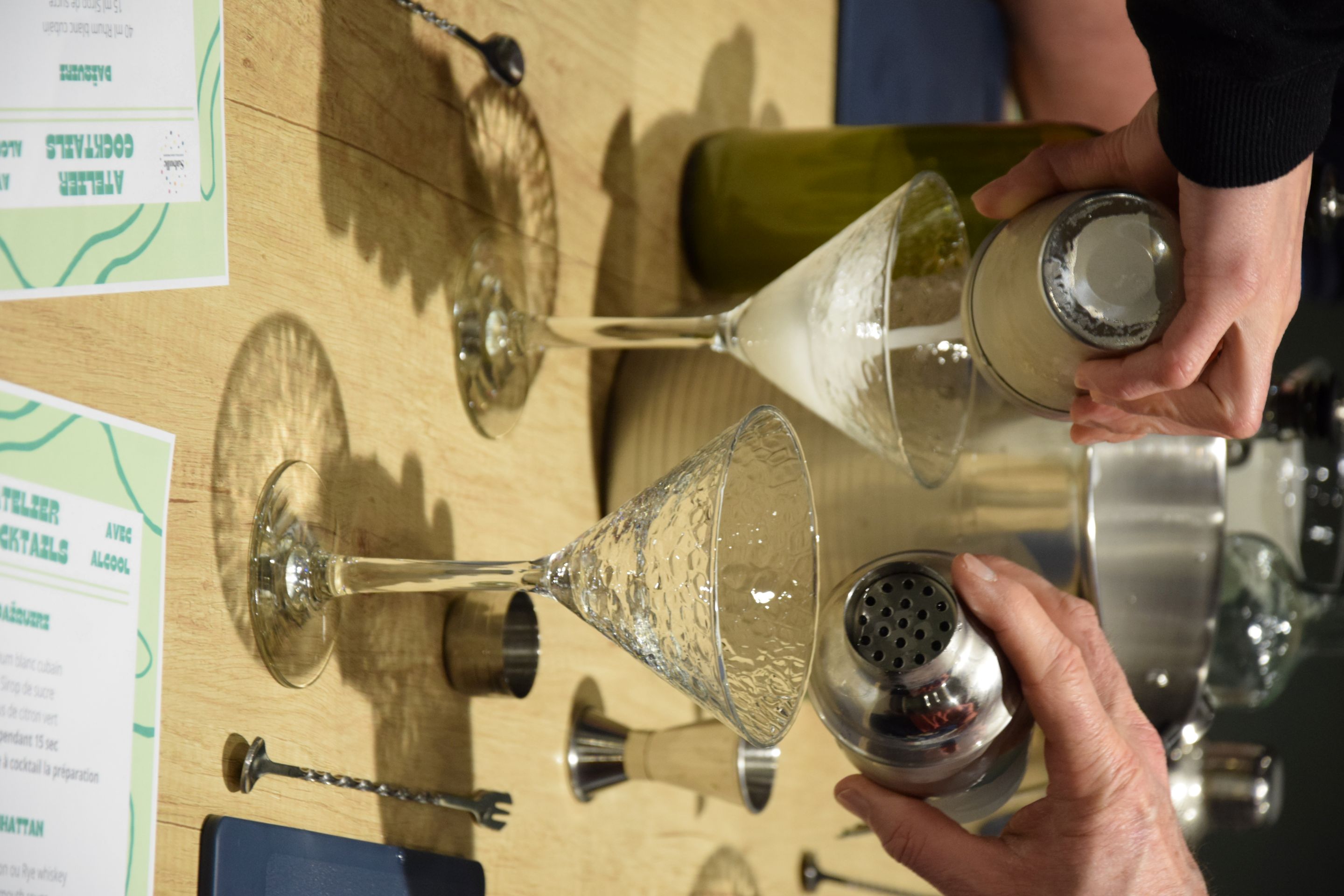 L’atelier débute par une présentation du matériel, des ingrédients et de l’histoire du cocktail, avant de guider les participants dans la réalisation de plusieurs recettes.